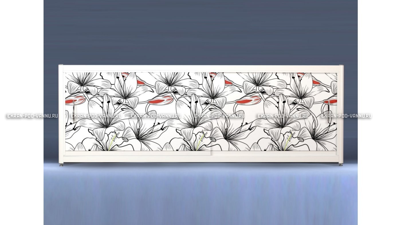 При наличии труб, помех сделаем вставку (+ 700 руб.). Также изделие может быть укомплектовано полкой длиной 103 см, крепится внутри экрана на саморезы (слева, справа или по центру), цена – 1080 руб. Экран имеет жесткую установку под ванну за счет регулируемых ножек.